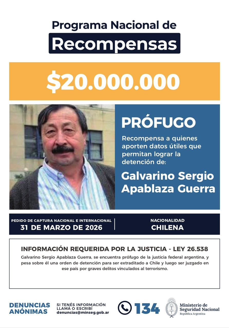 Desde el Ministerio de Seguridad han habilitado la línea gratuita 134 para que cualquier ciudadano que posea datos útiles sobre el paradero de Apablaza pueda colaborar de manera anónima con el Programa Nacional de Recompensas. La sospecha de que el exlíder del FPMR pueda estar recibiendo apoyo de sectores residuales de la extrema izquierda local ha puesto en alerta a las fuerzas federales. La prioridad absoluta es cerrar el cerco sobre quien fuera uno de los máximos exponentes de la violencia política en el Cono Sur, garantizando que el proceso de extradición se cumpla sin más dilaciones.