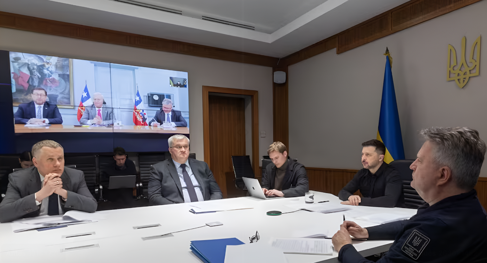 “Venimos saliendo de una muy buena reunión con el Presidente Zelenski, donde le manifestamos nuestro apoyo político a sus problemas y nuestra voluntad de cooperar en los foros multilaterales”, señaló el Canciller Pérez Mackenna en un punto de prensa tras la cita.