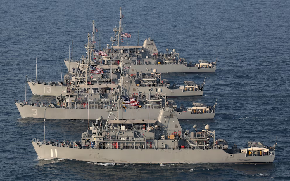 La Quinta Flota de Estados Unidos encabeza esta operación sin precedentes mediante los portaaviones USS Gerald R. Ford, Abraham Lincoln y George H.W. Bush. El despliegue incluye diez destructores de la clase Arleigh Burke y dos buques de asalto anfibio, encargados de coordinar el bloqueo total de las exportaciones e importaciones del estado terrorista.