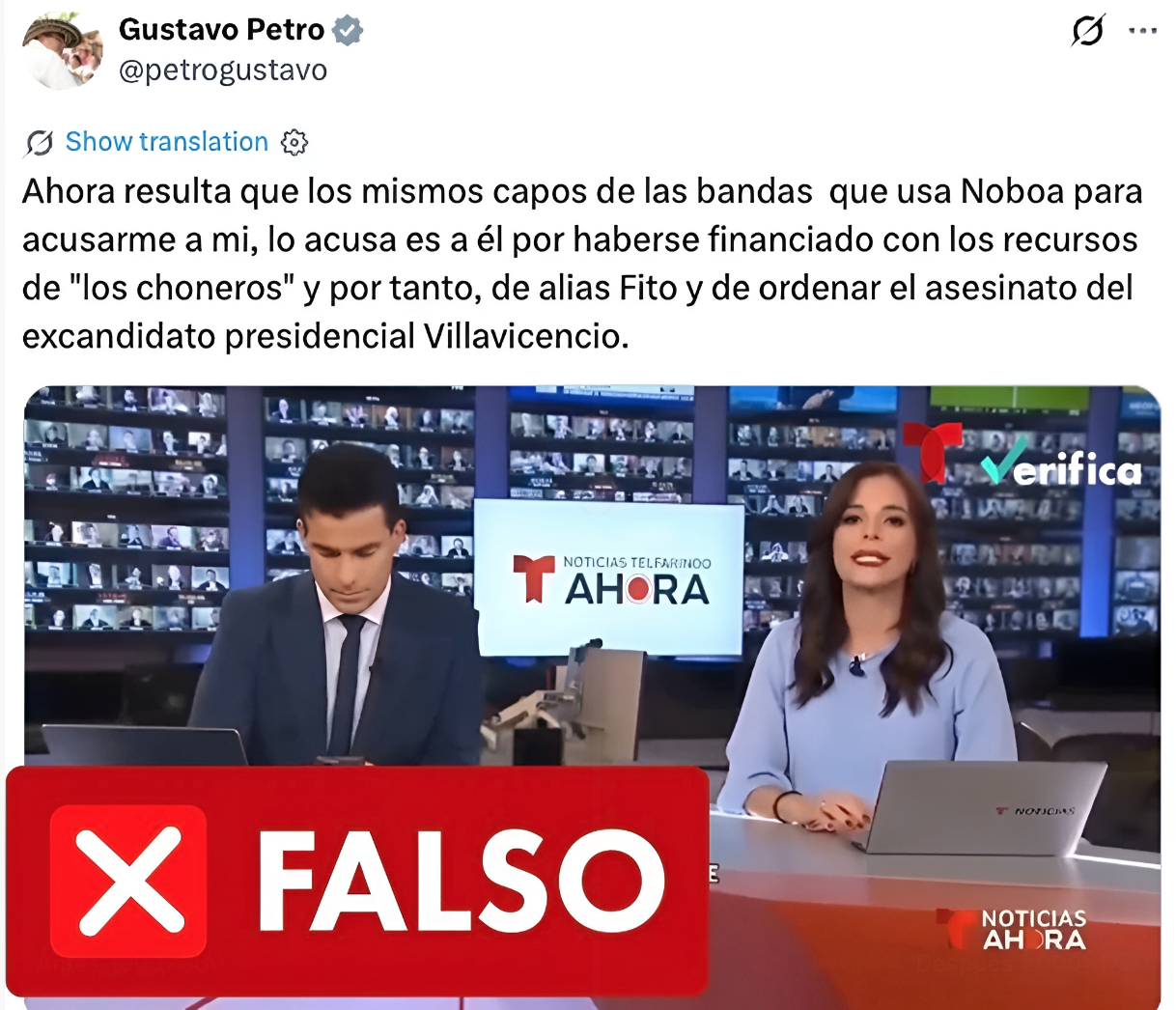 🇨🇴🇪🇨‼️ | El presidente Gustavo Petro difundió un deepfake generado con IA que suplanta a Noticias Telemundo para atacar al mandatario ecuatoriano Daniel Noboa. El video, desmentido por la cadena y calificado como falso en un 99.7%, utiliza voces e imágenes manipuladas para lanzar… pic.twitter.com/jOqpAmySHz