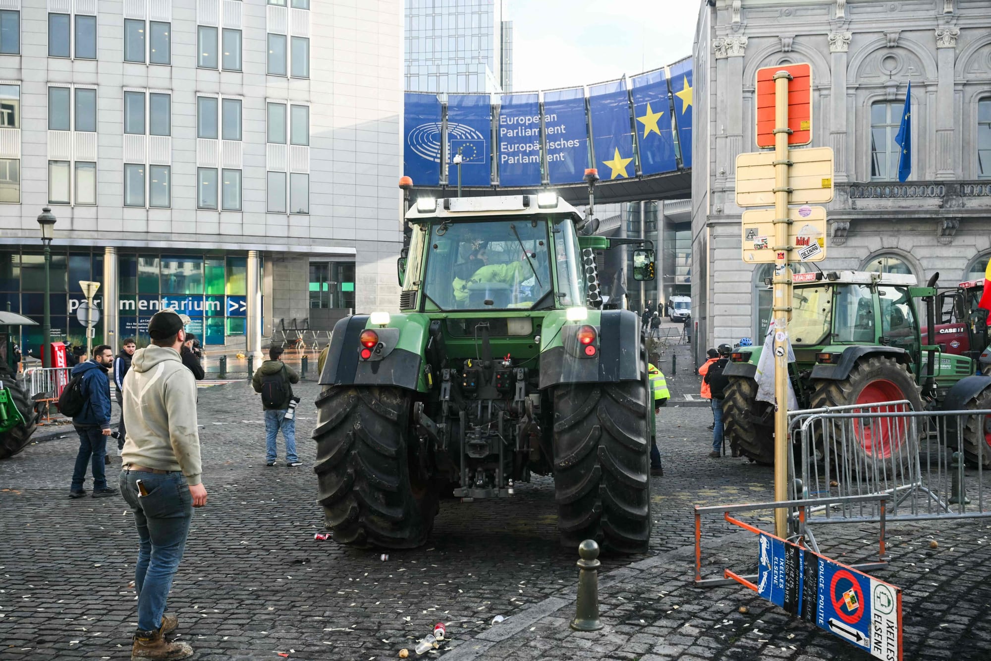 Alrededor de 10.000 manifestantes se concentraron en el barrio europeo, oponiéndose al acuerdo comercial entre la UE y el Mercosur, temiendo una competencia desleal por la importación de productos agrícolas sudamericanos más baratos y con menores regulaciones, como carne de res, azúcar, arroz, miel y soja. Este pacto amenaza sus ingresos en un sector ya afectado por crisis previas y posibles recortes en la Política Agrícola Común (PAC).
